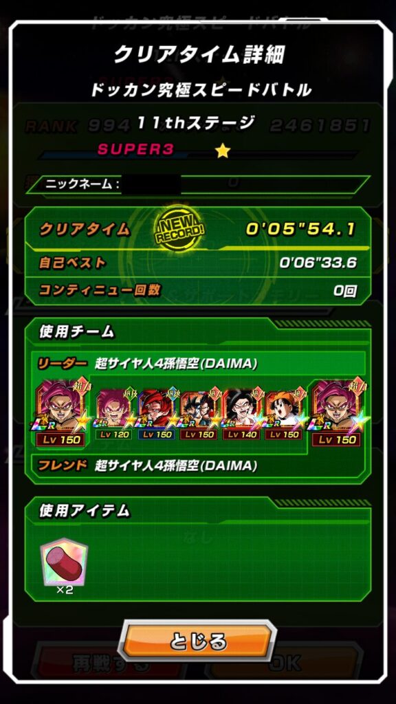 この記事は、『ドッカン究極スピードバトル』の6分4秒未満でクリアミッションを攻略したチームを紹介します。