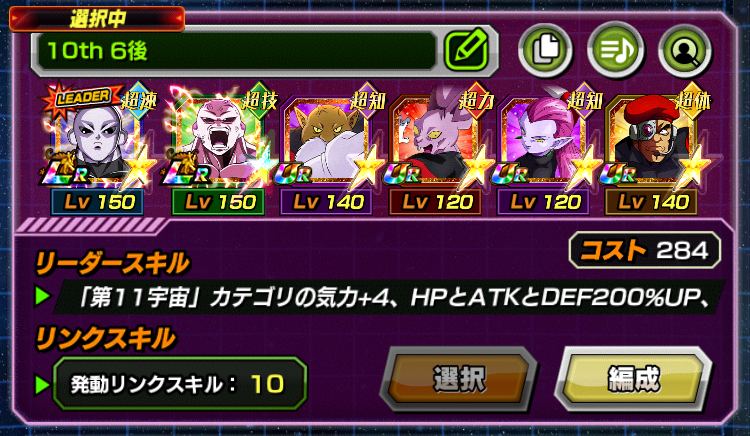- 自身の他に攻撃参加中の「第11宇宙」 カテゴリの味方がいるとき、ダメージ軽減率11%UP。