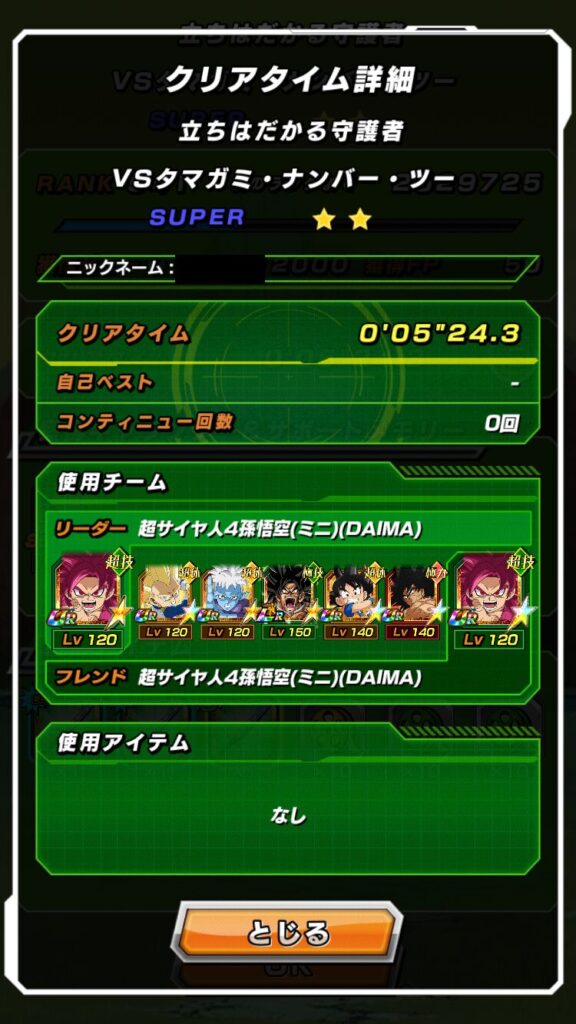 私の場合は、孫悟空(ミニ)(DAIMA) で5回攻撃し、ミッションをクリアしました。