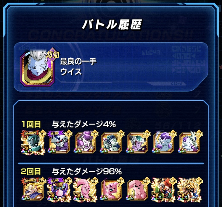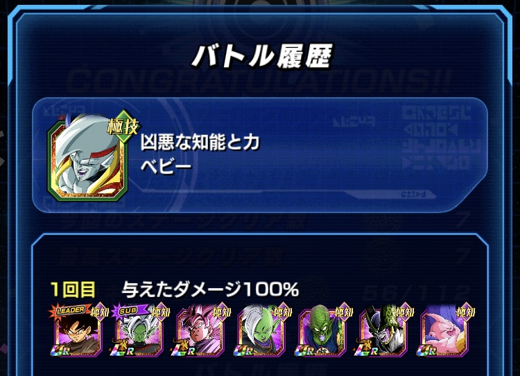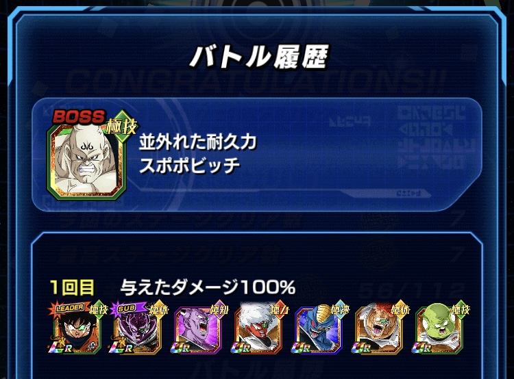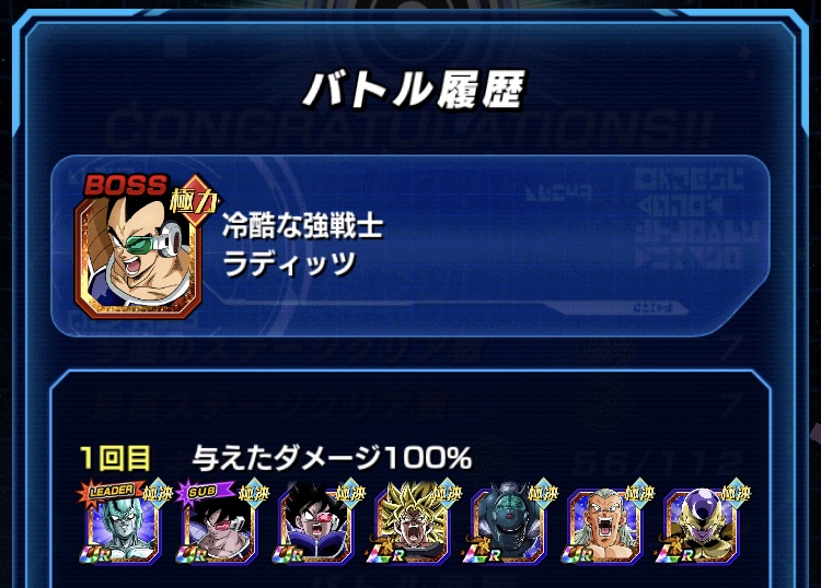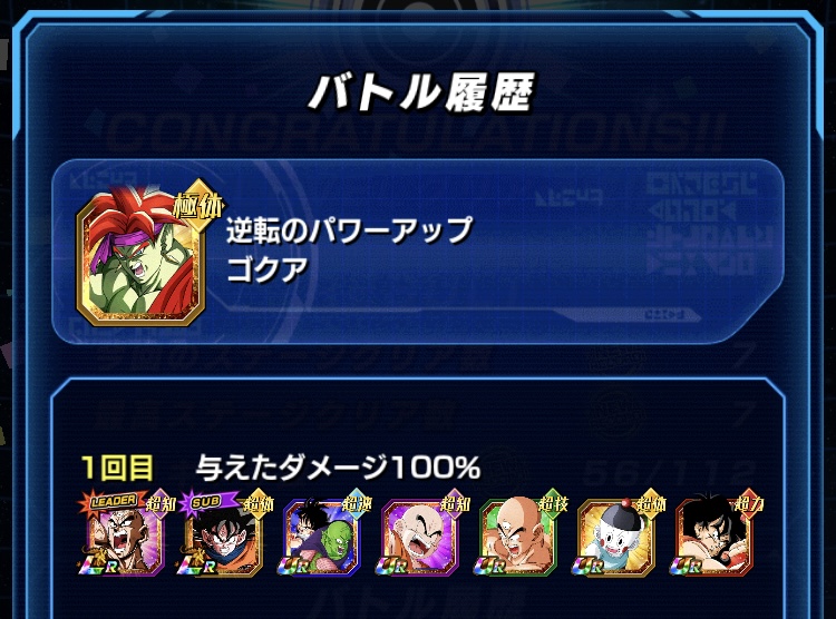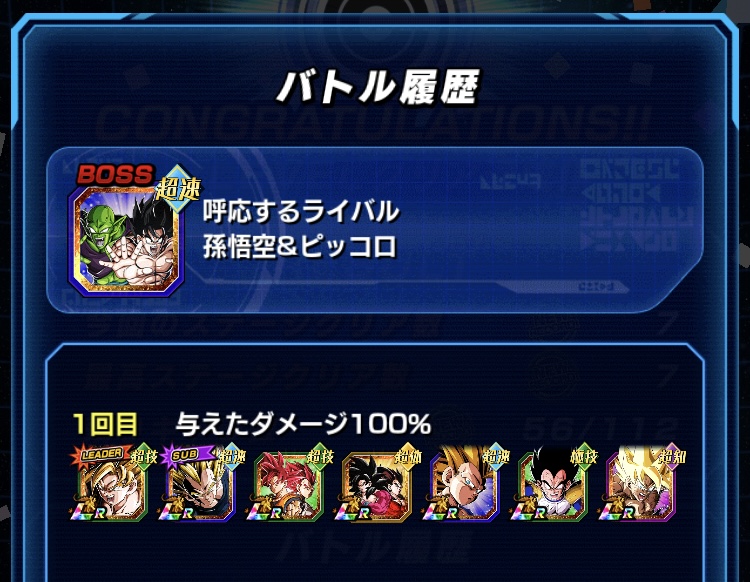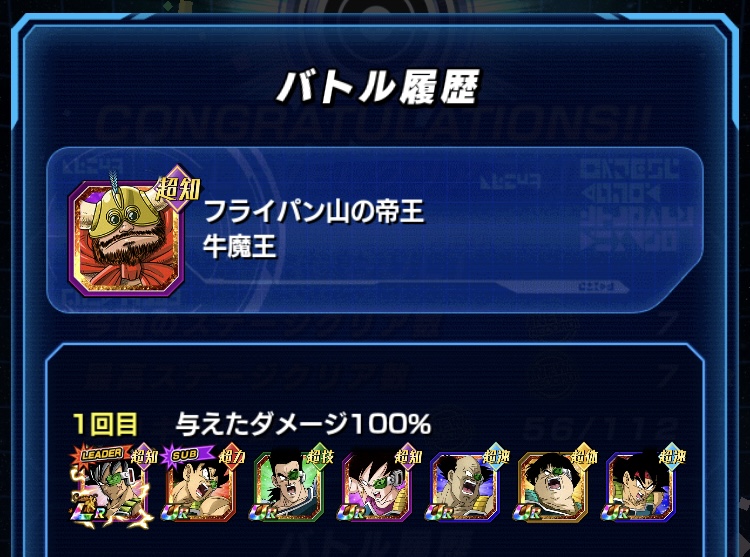 イベント産の超系チームの『バーダックチーム』カテゴリ編成としました。特に危なげなくクリアできました。